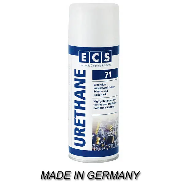 يوريثان سبراي (صنع في ألمانيا) هو مكون واحد عالي الجودة ورنيش البولي يوريثين ، مناسبة خاصة للصناعة الالكترونية. فهو يحمي ويعزل الوحات الالكترونية المطبوعة بصفة عامة والمحركات الكهربائية والمحولات الإلكترونية وكذلك المعدات الالكترونية. يوفر ايضا الحماية من الإضرار بالظروف البيئية مثل الرطوبة ، الأبخرة المالحة ، الفطريات كما يشكل اليوريثان سبراي مادة صلبة ومستقرة ومرنة وغير موصلة ومقاومة للظروف القاسية و تستخدم بشكل رئيسي كحماية للوحات الدوائر المطبوعة و يتم استخدامه كمقاومة ووقاية طلاء مثالي للمحركات الكهربائية والمحولات و المعدات والمكونات الأخرى. مناسبة خاصة لمنع الضرر الناجم عن الرطوبة والتآكل و العوامل الكيميائية